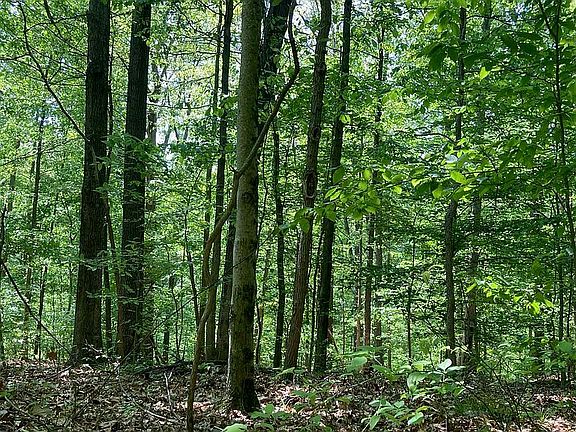 Beautiful place for a dream home on 24 acres, 7 minutes from the IU campus and the new hospital. Lower meadow and large flat ridge top for building with loads of mature forest backing up to state forest land. Wildlife and trails. One-of-a-kind property close to Bloomington and completely secluded. Just outside the city limits. Utilities: electricity and rural water company., Driveway and to two existing small A-frame houses at the top of the meadow with older septic system that are easy tear-downs and a good building site there or up on top of the ridge.