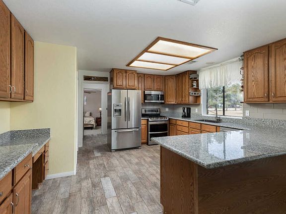 QUIET COUNTRY LIVING. Recently updated Single Story Ranch Style Home, 4 bedroom, 2 bath. New granite counter tops, stainless steel appliances, wood grain tile flooring and new carpet. Large master bedroom with double-entry walk-in closet including built in vanity. Additional bedrooms and Guest Suite are located on eastside of the home. Guest suite includes private bathroom and walk-in closet. Home is equipped with a wood burning stove for the cool winters. Exterior boasts classic brick veneer, fresh paint, new stucco, charming shutters, circular driveway with porta cochere. 2.5 Acres of space for animals, motorcycles or your classic cars. Great deal of storage with a 20 X 37 shop located on the property, also including a 45' storage container. Dog run located in backyard. Property is fully fenced.
