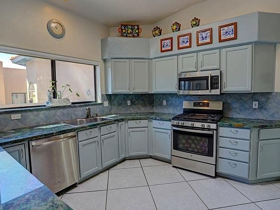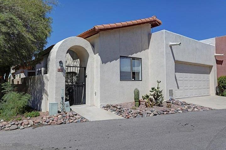 Nestled in the Catalina Foothills, this luxurious townhouse is in Kachina Hills, a desirable gated community. Fall in love with the remodeled kitchen, which features magnificent Brazilian onyx countertops, stainless steel appliances, an eat-in kitchen, and counter dining. Make your way into the large family room with high ceilings, ample natural light & built-in entertainment center. The French doors lead to your private, covered patio with room to entertain amidst a lush collection of bougainvillea, orange & jacaranda trees, exotic cacti, and potted plants. The spacious primary bedroom boasts wooden shutters, mountain views, & walk-in closet. The primary bath has been upgraded with an artistic glass & tile shower, a Toto bidet/toilet, a jetted tub, and a dual vanity. Well-maintained; More... Tenant pays for services ( water, electricity, gas). tenant pays landscaping