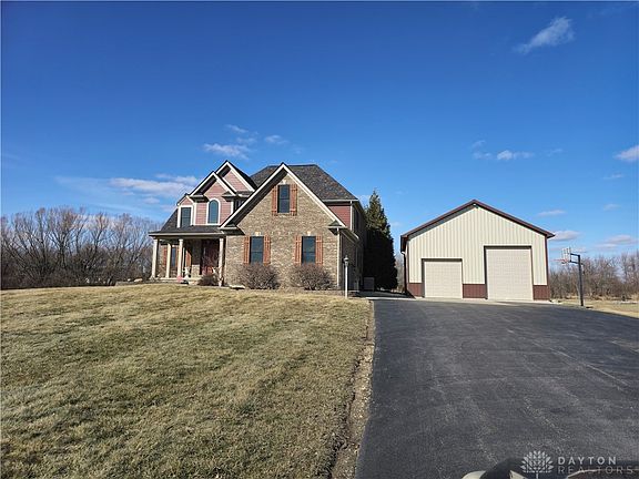 Freshly painted interior and move in ready! Over 4000 sq ft on 1.78 acres that includes a walk-out basement with 2 bedrooms, full bath, 28x16 Family Room and a bar area. Renovations include: windows replaced 2022, roof 2022, renovated dining room/office 2022, new HVAC (heat pump) 2019, swimming pool 2021, new pole barn 2019, added back patio 2013 and finished the basement 2011 - just to name a few. The 26x16 detached garage has had insulation added and the pole barn sits behind this garage. Located in Miami County with easy access to Montgomery and Clark Counties, WPAFB, The Rose Music Center at the Heights and many shopping locations.