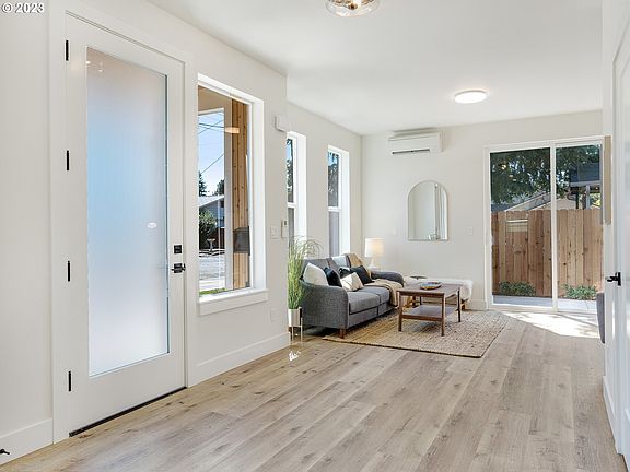 PHENOMENAL + hard to find Woodstock location meets elevated design + modern architecture with this gorgeous new construction condo! Impeccably designed, find warm tones across this open concept floor plan boasting expansive windows for a light + bright feel with slider out to private, fenced patio with coveted AC! High-end finishes grace each space with custom kitchen featuring modern + warm cabinetry, quartz counters, extensive tile backsplash and upgraded, SS appliance package. Detailed, Mid-Century Modern slat staircase, sleek black fixtures + stylish lighting + designer tones finish out this custom, 2 bed/2.1 bath interior! 95BikeScore puts you in the hub of one of the hottest neighborhoods + just blocks to idyllic restaurants, shops + coffee! Enjoy low HOA dues plus 1-year builder warranty with peace of mind from a local boutique builder! (List price is subject to the buyer qualifying for the Portland Housing Bureau - System Development Charge exemption program to promote affordable housing in Portland, call for more info.)