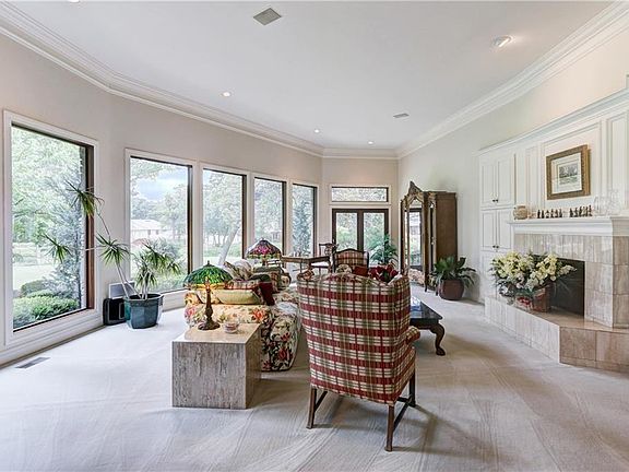 Best view & best lot on Oak Tree National. With a view of #12 green and fairway and tons of light in the LARGE open living, dining and kitchen you won't want to ever leave!! New Pella windows and sliding doors make the view even more spectacular. Home boasts of a large study with view of the course and large master with en-suite bathroom with french doors out to one of 3 outdoor patios. Upstairs are two bedrooms each with ensuite bathroom and lots of closet. Home has 3 HVAC zones with newer units and a gas-powered generator large enough to run the entire home. Beautiful marble kitchen countertops, an island, double ovens and a walk-in pantry make this a great chef's kitchen. 3-car garage with a storm shelter is also an extra amenity in this home. This home is immaculate and move-in ready. Homes in The Oaks with a view of #12 only come available once in a "blue moon"! So don't wait - call to schedule your tour!