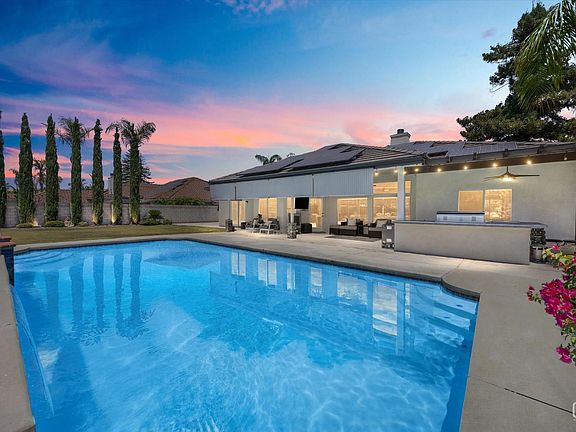 Owned solar and stunning upgrades in this Northwest 4-bed + office, 2-bath split-wing home with pool and RV parking! Features include luxury vinyl plank flooring, remodeled baths, new HVAC, and solar by Bland (2018). Chef's kitchen with stainless appliances, wine fridge, breakfast bar, nook, and pantry. Spacious family room with floor-to-ceiling stone fireplace and double-height windows. Primary suite with walk-in closet and dual sinks. Entertainer's backyard with covered patio, outdoor kitchen, heated play pool, raised spa with waterfalls, and new variable-speed pool pump. 3-car garage with storage, gated 8' wide RV parking, and more!
