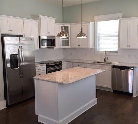Great home in PRISTINE condition that backs up to conservation area. The Masonboro plan includes a master bedroom downstairs, flex living space and two bedrooms upstairs, and a screened porch off the kitchen. All appliances included - refrigerator, washer and dryer. Quartz counter tops and white cabinets in the kitchen. 10 ft ceilings downstairs. Blinds installed as well. Shinnwood West features loads of amenities-pool, dog park, garden, walking trails, and a sidewalk to Bradley Creek Elementary. Move in Ready!