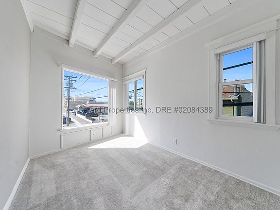 IMPORTANT GUIDELINES: - Income requirement: monthly gross income = 3x rent amount, or more - Good credit and one year minimum lease required - Non-smoking only Prime location for this bright upstairs 2 BR, 1 BA apartment, 6 short blocks from the pier, and half a block from Main Street. - New kitchen counter top, sink, and faucet - New bathroom vanity and toilet - Ceramic floor tile in kitchen, bathroom. - Stainless range and microwave. - Open beam ceilings, large windows. - New carpet in bedrooms - Double paned windows throughout - Courtyard located at rear of property. Prior resident left refrigerator. Not warrantied by owner. On-site laundry room with coin-operated W&D. Water and trash service paid by owner. We have found that 100% of the people we rent to call us. If this property works for you please pick up the phone and call us.