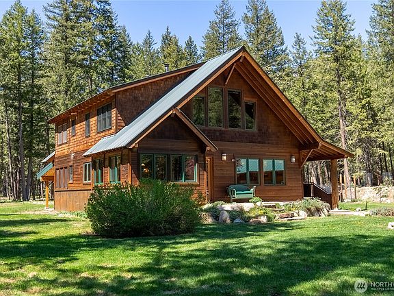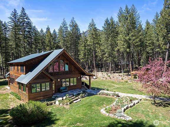 Escape to this serene Mazama retreat w breathtaking Goat Wall views! Updated home features an open floor plan, modern finishes, & luxe bathrooms. Cooking enthusiasts will love the ample granite counters & new appliances. Entertain w ease in the enviable outdoor kitchen, or relax in the fenced butterfly garden w potting shed/greenhouse. Primary bdrm features an open layout complemented by lg windows & views that bring the outdoors in! Includes 2nd bdrm, 2 refined tiled bathrooms w granite, glass showers & slate floors, versatile office/flex rm, inviting sunroom, airy screened sleeping porch, & lg basement for projects. Mint condition, with primo insulated garage & new quality RV building. Close to trails & Mazama store—adventure awaits!