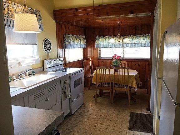 Pride of ownership shows in this well maintained cozy home. The proud owner of 65 years is downsizing. Newly upgraded electric, new roof 2008, remodeled bathroom in 2012, newer hot water heater, and all appliances stay. Original hardwood floors under carpet, beautiful built-ins and woodwork. Very nice 8x25 enclosed front porch. The floored walkup attic is insulated and ready for an additional bedroom or child's play area. Also there is a nice clean 27x25 finished area in the lower level with a 2nd bathroom. A lot of room to roam in this move in ready home. 2 plus car garage with workshop space. It's more than a drive by tells. Yes, it has an eat in kitchen plus a dining room!