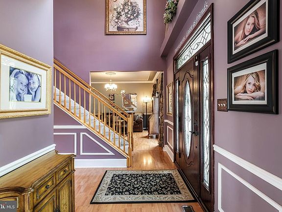 This magnificent home situated in the heart of Bucks County, PA is move-in ready. It is located in the highly sought after Reserve at Maple Knoll in Central Bucks School District and is just minutes away from the shops and dining of Doylestown. The exterior of this stunning colonial home has a full brick front accompanied by newly installed, upgraded garage doors. The entrance to this home features a stone walkway leading up to a custom-built, grand portico above a striking custom door. The beautiful, two-story foyer with open oak rails features engineered cherry flooring, picture molding, and custom mill work. From the foyer, the engineered floor continues into the formal living room which features crown molding, a bullnose chair rail, a trim detailed ceiling, and two over-sized, double-hung floor to ceiling windows that welcome in the outdoor light. On the other side of the foyer is the dining room which is currently being used as an in-home office, with two additional floor to ceiling windows, wall to wall carpet, and crown molding. The flooring continues from the formal entry into the open and spacious kitchen. The well-appointed kitchen is equipped with a center island, custom tile countertops, wood trim, 42~ cabinets with pull out drawers, large pantry and upgraded GE Profile stainless steel appliances. The sun-filled morning room opens from the kitchen with a full wall of windows beside an Atrium door and includes custom millwork. The kitchen opens to the Family room and continues the open floor concept with wall to wall carpet, custom built-in bookshelves to each side of the gas fireplace with stunning mantle and surround. Off of the morning room is a summer oasis that features a gorgeous Carlton heated salt water pool and spa with concrete decking, built-in gas grill and custom hardscaping. The back yard features a spacious shed a