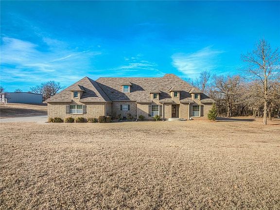 Luxurious & Incredible, hard to find beauty on acreage in Blanchard, Custom built, 4 spacious bedrooms, 2 & 1/2 baths with bonus room & study! Exquisite high end finishes with new hot water tank and new carpet! Kitchen has large walk-in pantry, granite, island , stunning cabinetry and great wood floors. Large study with built ins-great for work at home situations and/or virtual school needs. Stacked stone fireplace with gas logs and custom built ins in Living room that has a bank of windows overlooking the lovely landscaped acreage + lots of new concrete for wonderful outdoor space! Master retreat and bath feature claw foot soaking tub and separate Roman shower, Spacious Australian/walkabout closet. Downstairs the two extra bedrooms share a Jack and Jill bath. Upstairs is the 4th bedroom and bonus area! Energy efficient foam insulated helps keep utility bills low. Pine Ridge Neighborhood has 3 ponds. Check this one out before its GONE! Just Minutes from Norman