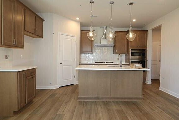 New END UNIT 2-story townhome! Upon entry you are greeted by a sun-filled great room that is open to a gorgeous GOURMET kitchen with SS appliances, upgraded cabinets, Quartz Countertops, tiled backsplash and luxury vinyl wide plank flooring thru out the main level. Take beautiful hardwood stairs to the upper level. Upstairs features three bedrooms & loft. Primary suite with spa-like bath that features raised vanities, fully tiled shower w/ seat, private water closet and large walk in closet. Two-Car Garage. Other features include: tankless gas water heater, Ring doorbell, Schlage Front Door Lock, electric car charging outlet, whole house surge protector. The community features a 15 acre lake, pool, parks, playgrounds, dog parks, trails and a newly opened pavilion! Minutes to schools, shopping, restaurants. Ready in Oct!