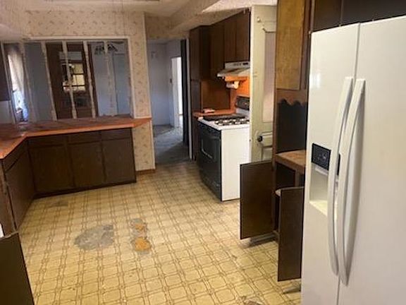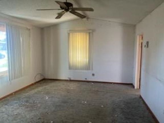 This house features a large corner lot across the street from the elementary school. It has two large bedrooms with a third bedroom off of the living room. New refrigerator to stay. Oversized two car detached garage.