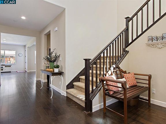 Elegant tall ceilings greet you in this spacious, well maintained Brentwood home featuring almost 3,000 sqft with 4 bedrooms, 3.5 bathrooms, and a substantial bonus area! Downstairs find a guest bedroom suite with full bath. The main floor also includes a powder room, separate formal dining area, office nook and combination gourmet kitchen/family room that sprawls across the entire back of the home and features a large island, stainless steel appliances, plenty of cabinets, pantry and tons of entertaining space. The second floor has a huge loft bonus area, laundry room, two large bedrooms with a shared bath, and a great master suite with walk-in closet and bathroom with tub and stall shower. This home includes a 3-car garage and is located on a cul-de-sac. Relax on the backyard patio and enjoy the nice lawn! Great curb appeal with newer exterior paint and fresh drought-friendly, low maintenance landscaping. This home has owned solar panels.