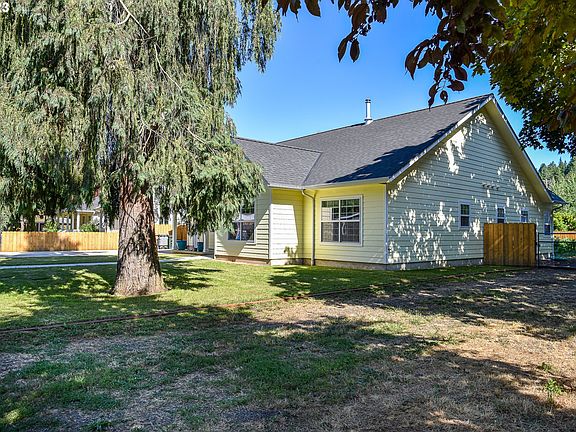 Welcome to your dream home in the heart of beautiful, historic Brownsville! Nestled in a quiet neighborhood, this custom-built 3 bedroom, 2 bath residence is the epitome of comfort. Just a short distance from Eugene, you'll enjoy the best of both worlds, peaceful small town living with easy access to urban amenities. Inside the home the spacious and open living area boasts an abundance of natural light with tall vaulted ceilings, large windows, and a wood burning stove. Cherry custom cabinets with soft close drawers, quartz countertops, modern appliances, and a center island full of storage can be found in the kitchen. The primary bedroom with an en-suite bathroom is tastefully designed with plenty of room and privacy. The master bath features a huge cherry cabinet, quartz counters with a double sink, walk-in-shower, large walk-in-closet, and heated tile floors. Two additional bedrooms, each with ample closet space and large windows are conveniently located next to the second full bathroom. Cherry cabinets, tile floors, and quartz counters can be found in the second bath as well. The laundry room has an extra roomy cabinet with laundry bins, modern washer and dryer, and a built-in ironing board. The insulated garage attached to the home contains a 50 gallon recirculating water heater providing instant hot water throughout the home. A whole house water filtration system, an electronic air filter with scrubber and lighted storage above the ceiling. Out back, beyond the covered patio you will find a large, fenced yard that contains a huge vegetable garden area, a fruit orchard (apple, plumb, fig, and pear) plus raspberries and strawberries. The 648 sq. ft. insulated shop is complete with a shower and plumbing ready for the toilet and sink, a welding plug, and a super duty work bench. RV space/hookup. The property is a .32 acre double lot, with power, sewer and water available on the second lot. Agent is related to seller