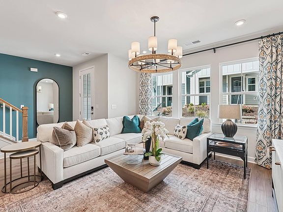 Move-in Ready. END UNIT. Two- story townhome with two-car garage. Open layout with spacious family room, dining and kitchen. White soft-close cabinets, Quartz Countertops & tiled backsplash. Luxury vinyl wide plank flooring thru out the main level. Dropzone at the garage entry. Oak stairs to the upper level. Second floor features three bedrooms , loft & walk-in laundry room. Primary suite with spa-like bath that features raised vanities, private water closet and large walk in closet. Other features include: Black finsihes throughout, tankless gas water heater, Ring doorbell, Schlage Front Door Lock, electric car charging outlet, whole house surge protector. The community features a 15 acre lake, pool, clubhouse, parks, and trails! Minutes to schools, shopping, restaurants. Must see!