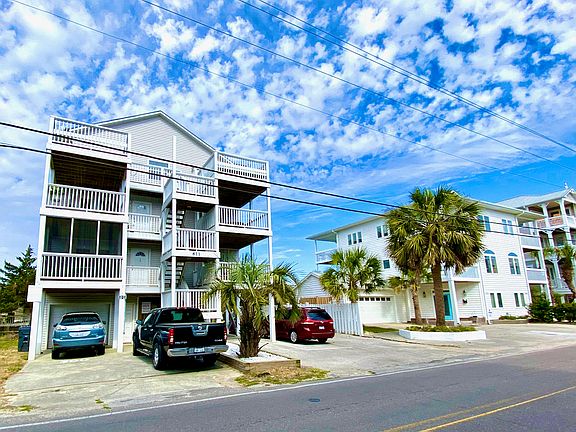 Beautiful 2nd row condo in a fantastic location: across the street from the ocean & public beach access. Walk to: SeaWitch .4 miles, CB Boardwalk .6 miles, & Freeman Park 1.3 miles. Awesome sunset views over the inlet from the back porch. High function layout with open great room, kitchen & dining all with views to the spacious front porch. 3 good sized bedrooms + 2.5 baths & laundry. Perfect to make your primary or vacation home, or rental. Completely remodeled in 2019. Kitchen has new: cabinets with island/bar, leathered granite + tile backsplash, microwave, range & recessed lighting. Jack-n-Jill bath remodeled with new: wood look ceramic floor tile, 5' tile shower with large subway tile walls & stone floor, new vanity, toilet & all fixtures. Master bath remodel includes new: tub with marble look tile surround, toilet, LVP floor, most fixtures. New Roof and siding on the whole building in 2019. Exterior trim painted. This unit has all new impact rated windows and doors. Some new insulation & drywall. All new flooring – LVP in most & carpet in 2 bedrooms. New lighting. Refrigerator, washer & dryer remain. Note: Listing agent is one of the owners of the property.