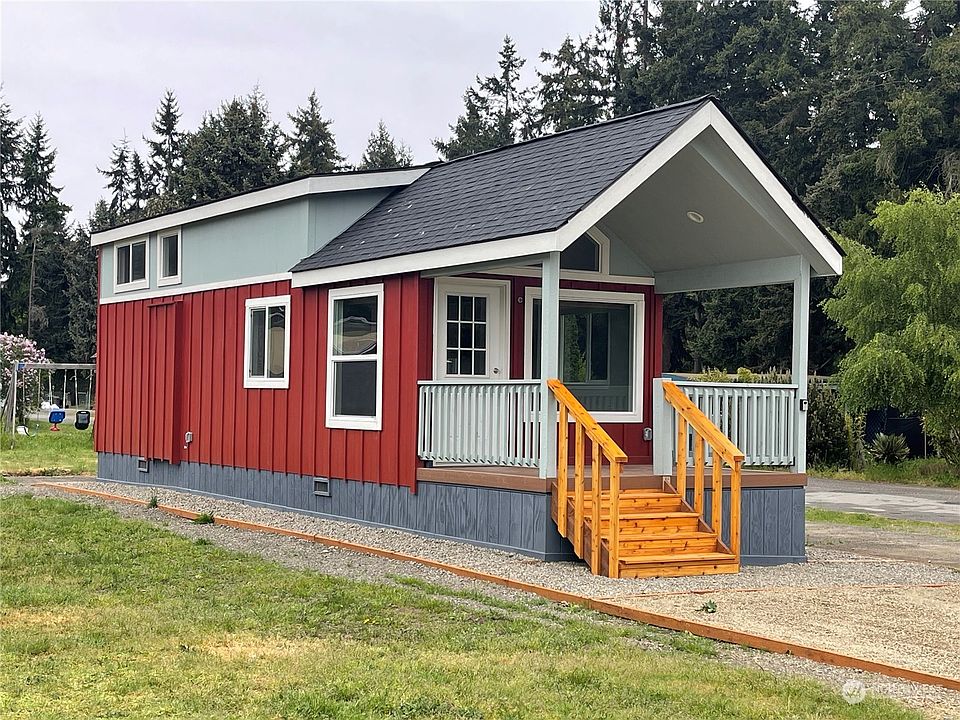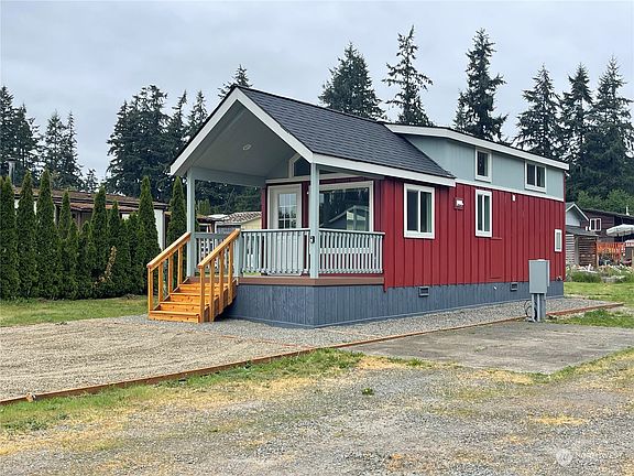 This is a GREAT location and brand new Fleetwood home. Set on a spacious corner lot with great natural light on the lot as well as inside with those terrific vaulted ceilings and windows up above as wee. Enjoy the oversized covered porch, roomy living space and room for a drop-down dining table. Stainless appliances, dishwasher and good storage. Room for a nice out building, pad already in place. 3/4 bath with glass shower doors, washer and dryer hookups ready for you. Close to the Jefferson County Public Library and Jefferson Transit pick up as well. Corner lot gives you an expanded sense of space. The leased lot is appx 5000 SF. Easy living, great value and move-in ready!