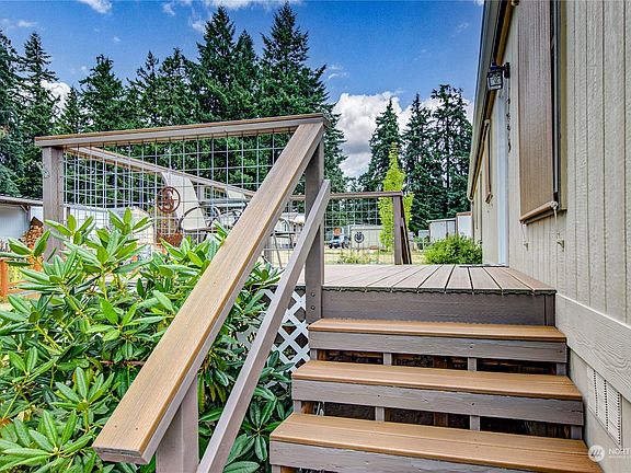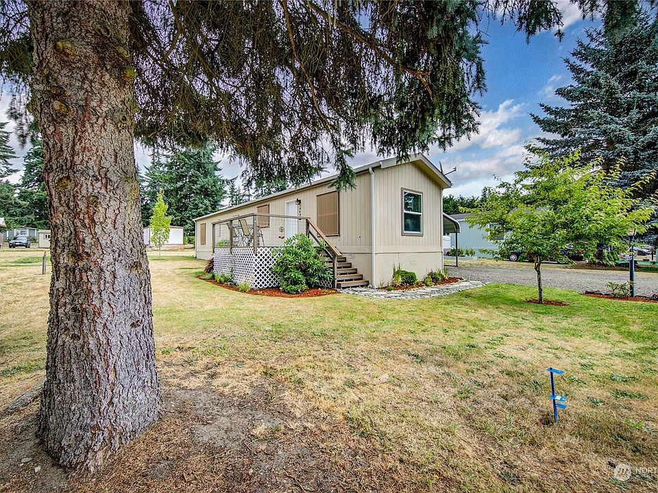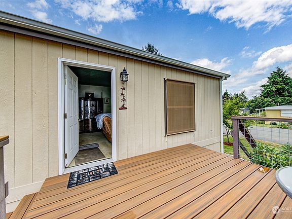 Neat and tidy home in Port Hadlock. Built in 2012 and well-maintained home features three new trex decks off home to expand living space. Kitchen opens to living room providing nice gathering space. Home features one large bedroom with second bedroom ideal for guests, office or hobby space. Property features raised beds, carport and large storage shed. Easy transition as home is move in ready. Home in B and R park, $575/mo covers water, sewer and garbage. Central Port Hadlock location across from the library, and just a short jaunt away from stores and restaurants.