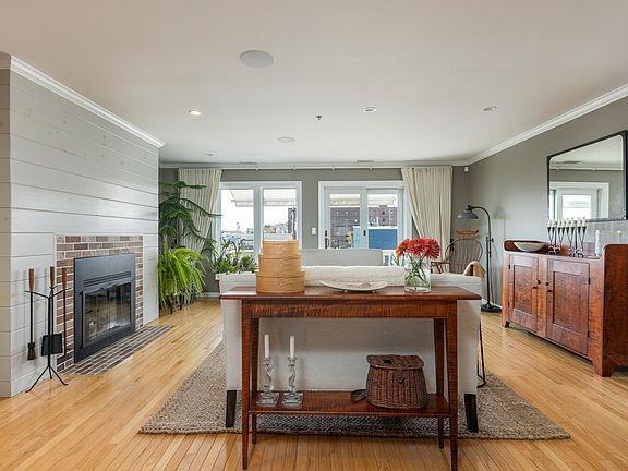 Discover true waterfront living in this uniquely located condo on Portland's historic working waterfront. Chandler's Wharf is the sole residential property of its kind due to zoning regulations. Nestled in the heart of the Old Port and secluded from busy Commercial Street, this secure wharf residence offers tranquility and direct views of the quintessential working waterfront. Enjoy the convenience of an on-site facilities manager to assist with maintenance requests, gatehouse staff that provide security and accept/deliver packages, and upcoming shared EV stations in the garage. The property boasts brand-new roofs and common sitting areas at the water's end, complemented by two adjacent waterside parks. The immaculate home, renovated by Portland interior designer Jan Robinson, features an open-concept kitchen and living area with a wood-burning fireplace and Sonos surround sound for added warmth and character. The primary bedroom suite is a peaceful sanctuary offering a contemporary bath with waterside views and newly installed solar skylights. Additional amenities include a guest bedroom with an ensuite bath, a versatile loft space, updated HVAC, and a tankless water heater. The Association's marina with 76 slips surrounds this coveted Old Port complex, offering intriguing views and the potential to rent or own your own boat slip in easy walking distance from the unit. At 611 Chandler's Wharf, you will enjoy condo living with a unique private townhouse feel (no shared elevators, hallways, or people living above you), and a welcoming planter box at the front entry for your gardening pleasure. The property includes two covered parking spots with storage and on-site visitor parking for your guests. Experience the perfect blend of luxury and tranquility in this meticulously maintained waterfront residence.