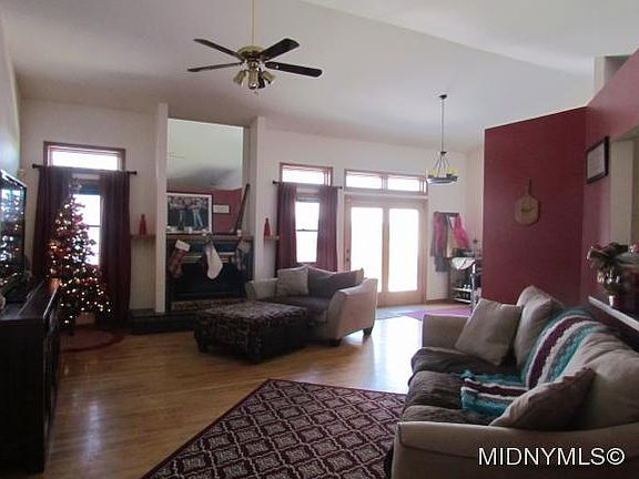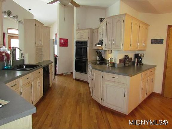 Open plan expansive ranch on double lot. Oppers kitchen, dining room, living room, dining area with vaulted ceiling and gas fireplace. Master suite with large master bedroom,and master bathroom. Main floor laundry with washer and dryer. Hardwood and tile flooring and central vacuum. Enclosed front porch. Full basement with beam construction partially finished. New furnace. Lots of storage space. Rear fenced yard with deck and double garage.