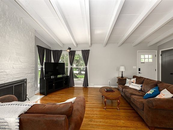 Beautifully updated raised ranch just several houses away from Witwer Park and tennis courts. Awesome great room & kitchen combo with vaulted exposed wood ceilings and tons of natural light! The living area has gleaming hardwood floors and a stone fireplace. The kitchen was remodeled in 2017 with white cabinetry, butcher block countertops, tile backsplash, stainless steel appliances, and a center island with breakfast bar. The dining area has sliders to a patio overlooking the backyard with its mature trees and privacy fencing. All of the bedrooms have hardwood floors, double closets, and ceiling fans. Both bathrooms have been renovated with new cabinetry, tile, and fixtures. The lower level has a spacious family room with built-ins and access to the oversized two car garage. The unfinished side of the basement has plenty of room for storage and boasts glass block windows. Impressive updates include Electrical box 2019, new roof 2019, water heater 2021, and furnace & AC 2021!! This is