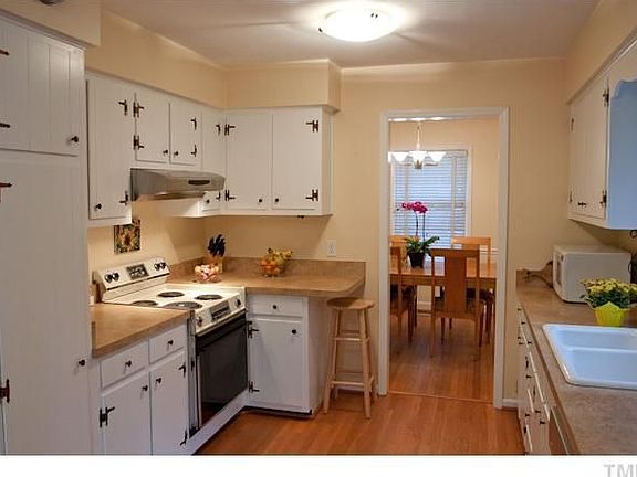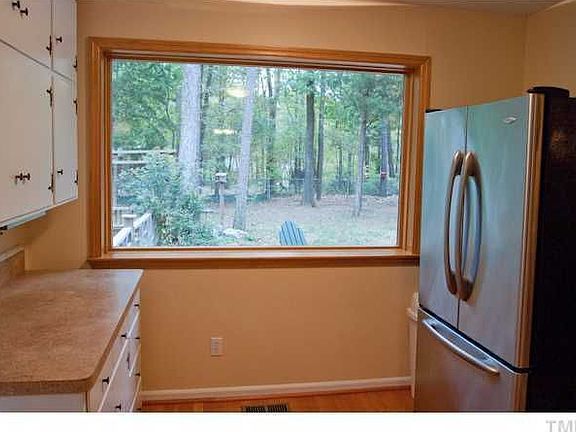 Cute one level on nice flat, large wooded lot. New Roof in 2011. New woodstove insert in 2011. Nice bath updates. Hardwood floors throughout. A lot of newer light fixtures. Nice big picture window in kitchen. Fenced backyard. Walk to elementary school, easy walk/bike to Trader Joe's and Eastgate shops.