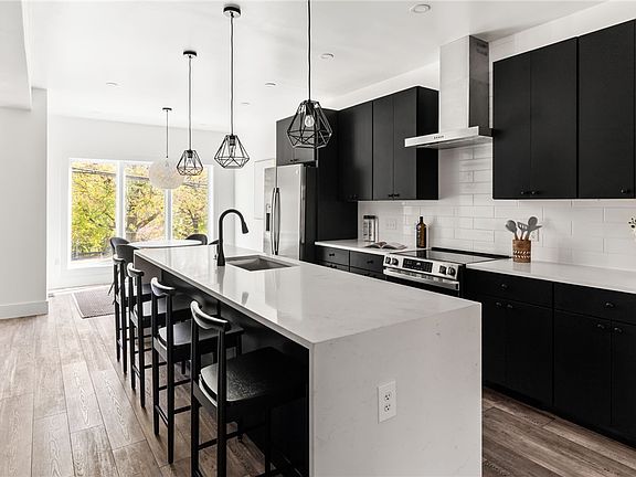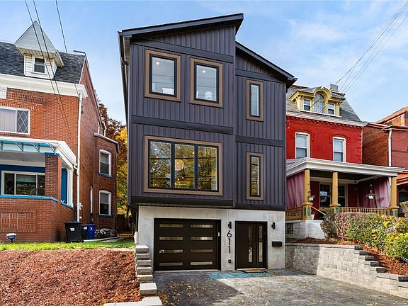 This stunning new-build offers a rare opportunity to be part of one of Pittsburgh’s most vibrant neighborhoods, just minutes from Highland Park, Bakery Square, Shadyside and shops along Penn Avenue. Designed for efficiency and style, the home features a thoughtful layout with each bedroom having its own private bath, including a half bath on the main level. The primary bath is a spa-like retreat with multiple shower-heads and a soaking tub. The rare integral garage and stamped concrete driveway are complemented by a striking black facade. Step outside to enjoy a tiered deck leading to a spacious patio and backyard—perfect for entertaining. At the heart of the home, the kitchen is a showstopper with a quartz island with custom waterfall edges, a generous pantry, built-in microwave and stainless appliances. A perfect blend of modern design and functionality, this home is ready to welcome you to East Liberty.