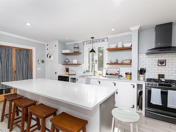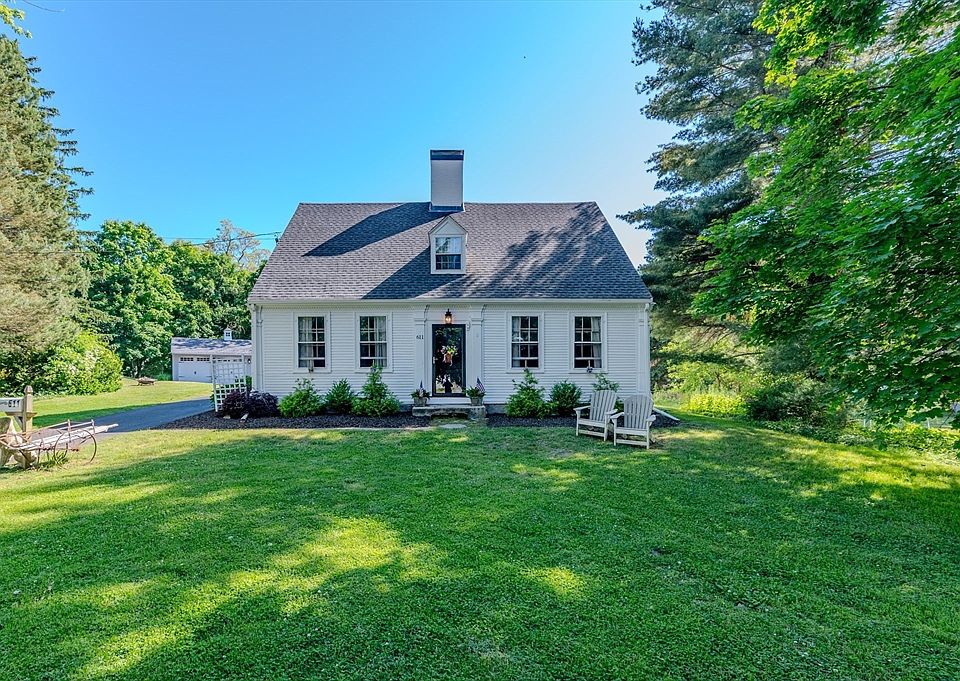 Spectacular Antique Center Chimney Cape with an attached Legal In-Law on a large picturesque lot! Main House has Character abound from the Newer Eat-in Kitchen w/pantry, Laundry Room & Spacious Dining Room with wood fireplace. Living Room and Family Room have wood fireplaces and plenty of room for entertaining. A Staircase in the Front Entry of the house and one off the Dining Room brings you up to the 2nd floor w/4 bedrooms and a Full Bath. The Oversized Heated Mud Room/Bonus Room w/1/2 bath connects the House with the In-Law which is a Beautifully converted Barn (approx. 7 yrs ago). This space is Outstanding with it's exposed barn wood throughout the Open Floor Plan which consists of Kitchen/Living Room w/Stone Gas Log Fireplace and Main Bedroom w/Full Bath & laundry off. Open Loft above with another Full Bath and more Living Area! A Newer Screened in Patio for outdoor enjoyment is off both the Mud Room and the In-Law. There is a Converted Carriage House w/3 Car Garage. A MUST see!!