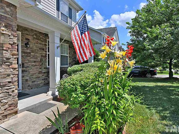 Community pool, private back yard that backs up to the woods, loft, porch, spacious master, jetted tub, new paint, new carpet, bamboo flooring, easy access to Briar Creek & Durham, 2 car garage, fireplace, 2.5 baths, 4 bedrooms, perfect condition engineered wood floor, granite, center island, tile backsplash.