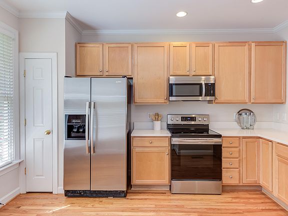 Captivating Copperline. This charming end townhome-style condominium is only a block to the dining, shops, and services of Market Street and around the corner to Scroggs Elementary School in coveted Southern Village. Overlooking a forested park out the front, wooded common area along the side, and village vistas from the back, abundant windows maximize natural light and cross-ventilation. The open and versatile layout with three bedrooms and three full bathrooms is move-in-ready and appointed with hardwood floors; new quartz kitchen countertops; stainless appliances; stylish carpet; tile bathrooms; and a fresh, neutral palette. Move-in and relax with a new roof and newer water heater and HVAC system. In addition to on-street parking, there is an attached one-car garage with storage and a workbench. The village Park & Ride, greenway trail, pool and tennis club, basketball court, ball fields, several play parks, fenced dog park and more are also within walking distance. Classic. Convenient. Comfortable. Copperline.
