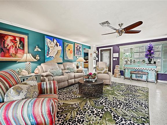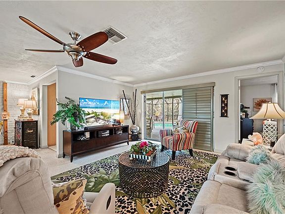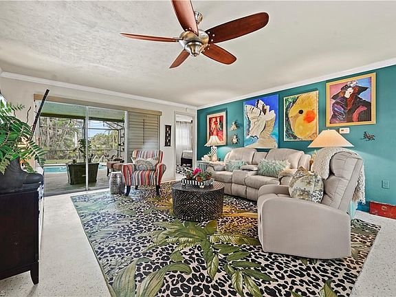 Flood Insurance is FULLY COVERED through FEMA through September 2025 and is TRANSFERRABLE, but not renewable. Refreshing evening breezes off the Caloosahatchee River await at this beautiful 2-bed + den, 2-bath POOL home! From the moment you arrive, you’ll be impressed by the curb appeal of the lush landscaping and NEW METAL ROOF just installed in 2023. The front patio welcomes you to step inside to the vibrant interior that feels bright and welcoming. Beautiful brick accents, crown molding and plantation shutters in the main spaces add to the overall appeal. The spacious kitchen features light wood cabinets, stainless steel appliances, granite countertops, and an eat-in kitchen with French doors leading to the screened lanai. The primary bedroom is complemented by an ensuite bath with updated dual vanities with plenty of storage. For a breath of fresh air, the NEWLY SCREENED lanai has ample space for relaxing and entertaining with a sparkling pool adjacent to the private backyard. Located just off Cape Coral Pkwy, you’re just a short drive from the best dining, shopping and entertainment that Cape Coral has to offer!