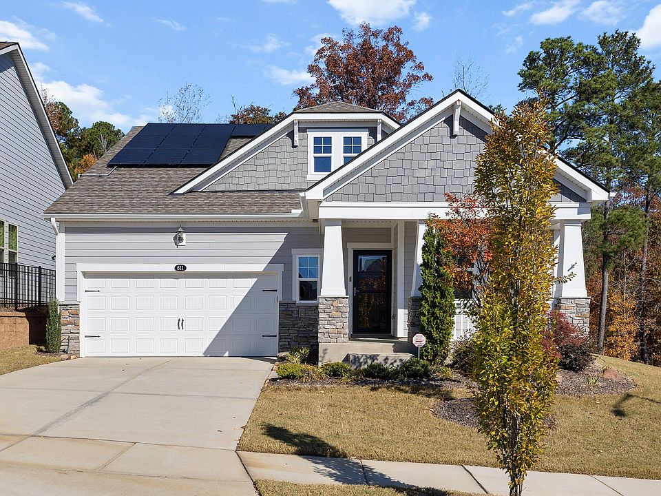 Welcome to this Upscale Pioneer Model — a stunning single-level home perfectly positioned on a gorgeous private wooded lot in the award-winning Creekside at Bethpage 55+ community! Enjoy expansive, peaceful views with the woods wrapping around two sides of the home, offering both beauty and privacy. Step inside to discover gleaming wood laminate floors and an open, light-filled floorplan designed for both comfort and style. Large windows fill the living space with natural light, creating a warm and inviting atmosphere throughout. The gourmet kitchen is a showstopper, featuring NEW Samsung Fridge 2023, NEW Miele Dishwasher 2025, quartz countertops, a gas cooktop, stainless steel appliances, a tile backsplash, and a working island with breakfast bar seating. A spacious walk-in pantry provides ample storage and convenience, making this kitchen both beautiful and functional. The large primary suite offers a peaceful retreat, highlighted large picture window that capture serene wooded views. The luxury ensuite bath includes dual vanities with granite countertops, a tiled walk-in shower with bench seat, and a spacious walk-in closet that conveniently connects to the laundry room. Enjoy the outdoors from the private screened porch or adjacent patio with tree-lined view — perfect for morning coffee or evening relaxation. The oversized garage features epoxy flooring and extra storage space. Plus, an efficient, move-in ready energy package: 8 kW rooftop solar array paired with a Tesla Powerwall and an integrated Tesla Level 2 car charger, delivering lower utility bills, resilient solarbackup power, and instant EV-ready convenience. — resulting in no electric bills for the past two years! This is one-level living at its finest — where style, comfort, and efficiency come together in a picture-perfect wooded setting. Ownership makes you a member of the community clubhouse, where you'll enjoy resort-style amenities including a pool, fitness center, pickle-ball, planned social events and more. Unbeatable location—minutes to I-40, I-540, Brier Creek shopping, dining, medical facilities, and RDU Airport. This home truly offers the best in comfort, convenience, and community. A must-see!
