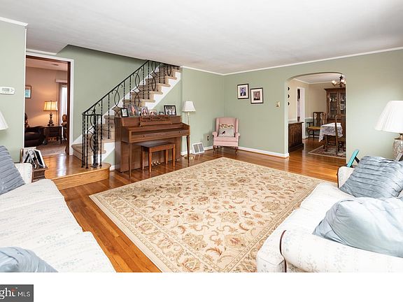 Welcome to this beautiful brick home in Colonial Park, Springfield, Delaware County. The current owners have meticulously cared for this home. Upon entering the living room, notice the exquisite hardwood floors throughout the living and dining rooms. The home is freshly painted and boasts both chair rail and crown molding on the first floor. Next enter the updated, eat-in kitchen with large pantry closet, which leads into the adjacent addition with family room and gas fireplace. A powder room completes the addition. There is a large slider that leads to the expansive deck and beautiful private level yard.Upstairs, are the master bedroom and two additional bedrooms with ceiling fans, one bath and pull-down stairs to floored attic. Bedrooms are carpeted over hardwood floors. There is an expanded linen closet in the hall as well. The basement is partially finished with separate utility room and washer and dryer.Outside features a lovely yard and shared driveway with two private parking spaces. Come visit this amazing property!