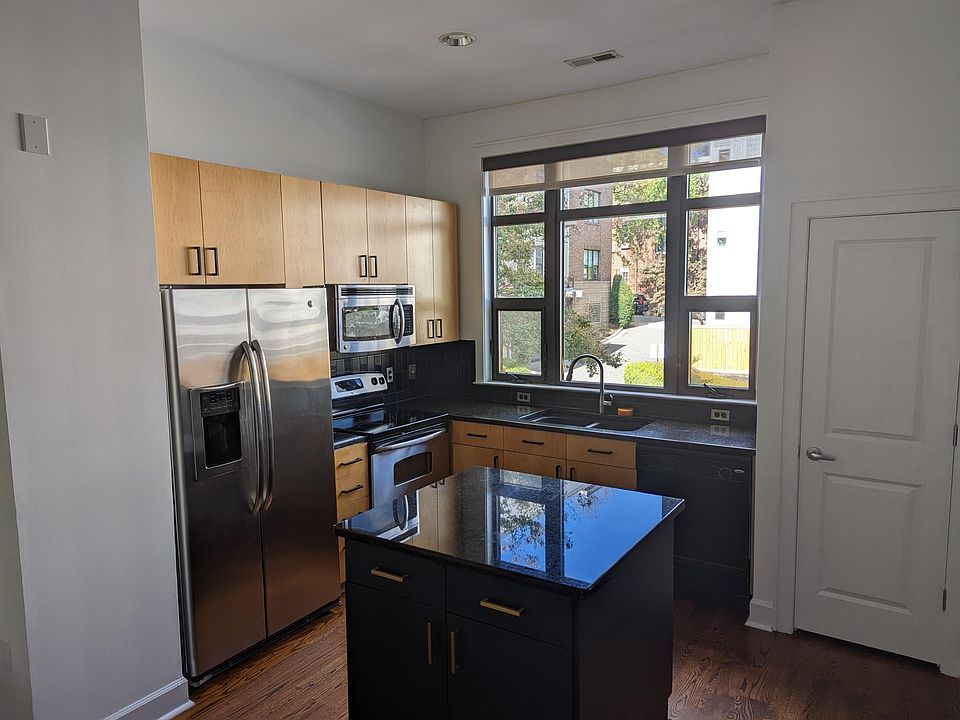 Live in the trees and enjoy panoramic Charlotte skyline views at this sleek and move in ready First Ward condo! High ceilings, floor to ceiling windows with roller shades, granite counters, and stainless appliances. The open floorplan features TWO flex spaces. Beautiful refinished hard wood floors on the living and master bedroom levels. Separate room off master with laundry (2019 machines included). Tons of storage throughout! One reserved parking space steps from entryway, 2 parking permits and one guest permit. Brand new interior paint and recent (2021) exterior update. TWO outdoor living options that include rooftop terrace and private fenced patio. Walk to the light rail or gold line, First Ward Park, 7th St. Station, Panthers, Hornets, Charlotte FC, and Knights games!