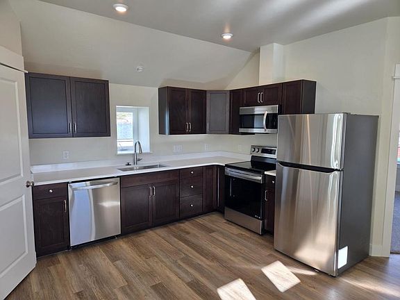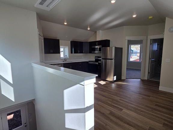 This bright, 1 bed/1 bath, 650 square foot carriage house is NEW CONSTRUCTION with ALL NEW EVERYTHING. Located on a quiet street just steps away from the East Side Mining District, up the street from the "We LOVE Leadville" sign and bordering the Mineral Belt Trail. Even comes with great views! This mountain modern apartment is filled with refined finishes, quartz countertops, stainless steel appliances and tranquil interior colors and is ready to be your quiet haven in the heart of Leadville. Additional features include a generously sized bedroom and full bathroom, full kitchen with dishwasher, walk-in pantry with front load washer/dryer and a cold climate heat pump with heating AND cooling. The apartment is separate from the main house for extra privacy and it comes with a garage space and outdoor parking pad! There's even a door from the garage right into the entryway for those chilly Leadville mornings.