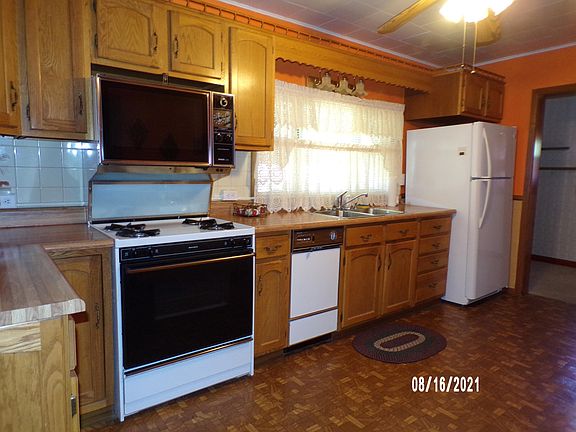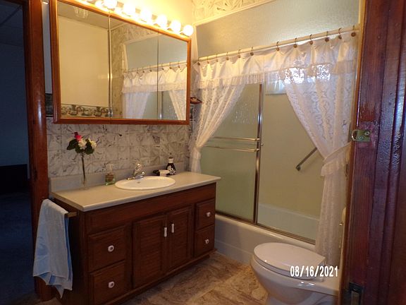 This home is in excellent condition - very well maintained throughout the years. Move in ready, Enjoy the original wood trimming, and plus the original wood floors under the carpet. Living room and dining room have large bay windows. Large kitchen plus kitchen nook. 3 bedrooms one jack and jill bath. All carpeted. Enclosed back porch for additional living space. But wait - there's also a basement with living space, or hobby area etc. Laundry hookups in kitchen closet. Now for the exterior, Metal siding , open front porch, 2 car garage plus workshop, storage shed, mature landscaping with lawn, flowering trees, fruit trees, sprinkling system front and back. fenced front and back. Shared driveway to the garage.
