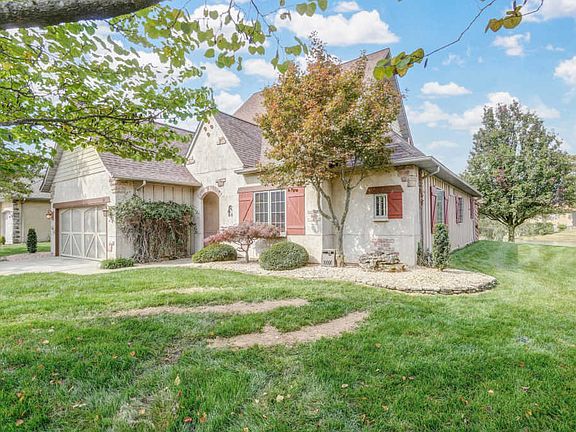 Fabulous Spanish stucco cottage features an enviable view of the lake at Waterford! Open floor plan and sky-high ceilings, rich neutral colors and a split layout are among the many reasons you'll want to make this your new home. Arched entry leads to a formal dining area and living room with gorgeous gas fireplace with brick surround and custom window treatments. Master Suite has a walk-in shower and jetted tub, with dual vanities and a huge closet! 3 Bedrooms, 2 Baths, and over 2,000 square feet on one level! Enjoy the view from the tiled patio out back, with gorgeous custom pergola and stunning views! See this one today!