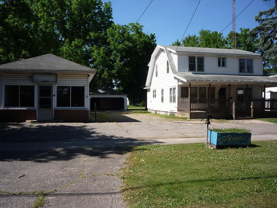 WOW 5 Bedrooms, Covered Porch, 2 car garage, Additional Building w/store front and half bath for the entrepreneur in you plus a shed and more, Here is an opportunity with unlimited possibilities. Have you ever dreamed of owning your own business? Come over with your imagination, you can live just steps away. This home has hardwood floors. There is a formal dining room plus laundry on the first floor as well as in the basement., including a laundry shoot, A fruit cellar and utility sink too. There is a great paved driveway with storefront parking available. The yard is lovely out back and has plenty of space to play or create a fabulous veggie garden for healthy treats. All interested parties should verify room and lot dimensions. Taxes could change with a closed transaction.