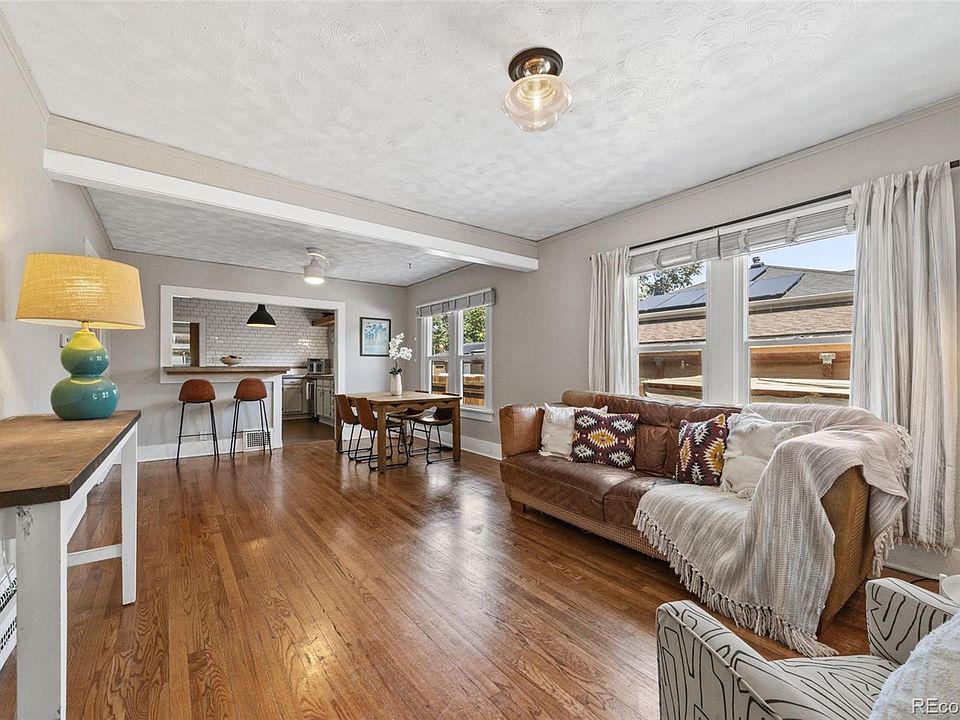 Welcome to the jewel of Globeville. This 1930 bungalow features historic character along with desired modern updates. The main floor features hardwoods and an open layout with plenty of space for a family room, dining space, and a large kitchen. Two bedrooms (including an oversized primary bedroom) and a full bathroom complete the main floor. The basement features two additional conforming bedrooms with new egress windows, a living space, laundry, and a large bathroom. An available second entrance makes the space great for guests or potential renters. The backyard is a private oasis, including a covered back deck and well-manicured yard with two storage sheds. The side driveway offers abundant off-street parking. Blocks from Argo Park and a 4-minute drive from the heart of RiNo, this home is one of the best that Globeville has to offer. See it today! // New egress windows 2025. New Furnace 2023. New Class-4 Impact-Resistant Roof 2025. New Washer/Dryer 2025. Refreshed Kitchen 2025.