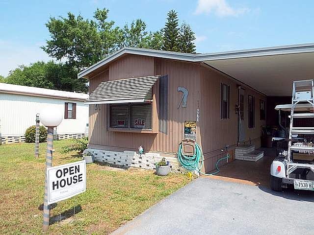 PEACEFUL AND RELAXING Enjoy entertaining or just relaxing in the large side lanai of this 2 bed 1 and a half bath home located in 55 plus golf and lake community. Home is being sold completely equipped and furnished so you can enjoy your getaway. New paint, laminate, and a split floor plan home. Use your golf cart to get to clubhouse, pool, spa, and enjoy all the park amenities. SB1896 LEASED LAND