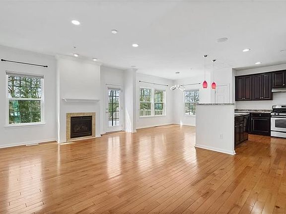 Stunning end unit Townhouse in the Village at Pine!! Features include: gorgeous hardwood flooring throughout most of the main floor, Open floor plan, Spacious Living Room with gas fireplace and access to the back deck, freshly painted main floor and 2nd-floor bedroom and hallway, 9' ceilings on the first level, Open Kitchen with lots of countertops, stainless appliances, center island with breakfast bar, and a large pantry. The master bedroom has 2 large walk-in closets and a full bathroom with a walk-in shower, a second floor laundry room, 2 additional bedrooms and a full guest bathroom! The lower level is completely finished with a walkout gameroom, 4th bedroom with it's own private full bathroom! There is a large covered back porch with rain guard ceiling, a huge composite deck with vinyl railings and a retractable awning and steps to one of the most desirable private rear yards which is backing to wooded Greenspace. It's Walking distance to Town Square shopping and restaurants.