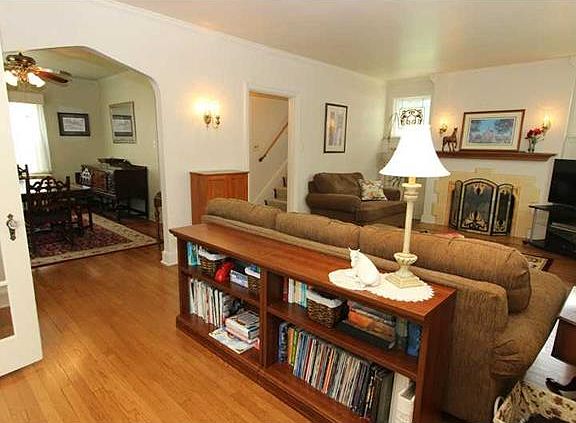 This sweet brick Tudor is loaded with charm and updates. Beautiful hardwood floors, all new windows, updated baths, stone fireplace in Living Room. 1st Floor Den. 3rd floor Bedroom =Family Room. Wonderful rear deck & fenced in yard & stone patio. Don't forget the large 2 car detached garage with alley access.