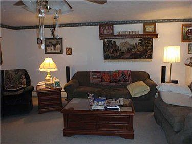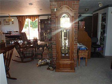 custom built ranch home, includes 2 fireplaces, open floor plan, bay window, recessed lighting around fireplace, eat-in-kit with oak cab., first floor laundry, second kit in basement, covered front porch, large deck in back with above ground pool, pole building for storage and additional parking, fruit trees in back yard. Also has a second house on property could be a rental unit, or great for a mother in law suite