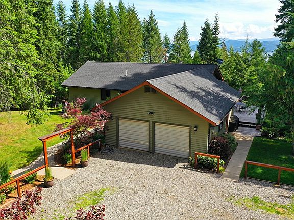 Situated above iconic Bottle Bay and part of the Sourdough Point Community, a perfectly maintained 3 bedroom, 3 bathroom home with 2,920SF of living space on 2.7 acres and a 40x60 shop/garage for all the toys. You'll love having 2 boat slips and private island amenities like tennis court, sandy beaches, grilling areas, and protected swimming area. Enjoy easy living with first floor Master Bedroom and laundry room. Convenient 2 car attached garage and entry into the mud room. Kitchen benefits from a walk-in pantry. Capture North Idaho beauty with a seasonal creek and beautiful wooded surroundings. Wintertime comfort from 2 wood burning stoves; one in the family room and one in the shop. Propane stove in the finished basement.