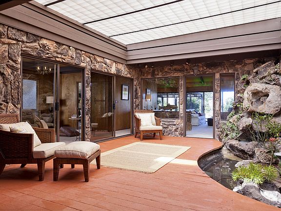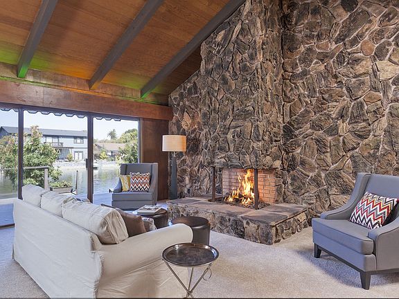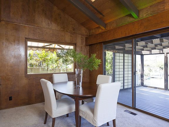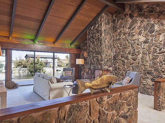 Unique, one-owner, custom built in 1972 on a lagoon captures the best of its era with vaulted ceilings & an atrium with a retractable ceiling for shelter from the rain or complete privacy in the sun. The living room, dining area, master bedroom all overlook the lagoon. There's a spacious deck and a private boat dock. While it's move-in ready, it does need some updating.
