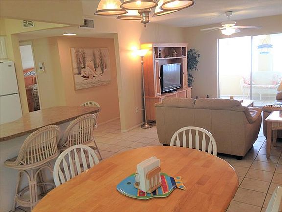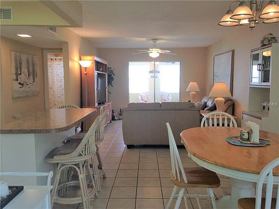 Ground Floor Condo, completely remodeled 2 bedroom 1 bathroom fully furnished with TV, refrigerator, appliances, linens, cookware, etc. Laundry Room is located just outside the unit. Imperial House is a 55+ community on beautiful Anna Maria Island located directly across the street from beach next to Wicked Cantina on the bay side. There is a clubhouse, heated pool, outdoor grill and fishing on the pier with beautiful views of the bay for you to enjoy. A private exterior storage unit is available for your beach toys. This updated ground floor condo is the perfect island getaway or home. Kitchen has been remodeled with a wall removed to open up the living area and an island has been added . Bath has been remodeled, unit has been freshly painted, porch enclosed. The condo is offered turnkey furnished. Just bring your clothes and toothbrush, everything else is here. You own the beach across the street and the property goes all the way to the bay/intracoastal waterway. There is a clubhouse and heated pool for visiting with friends or attending the many activities. You will also enjoy fishing on the fishing pier or sitting at the bayside patio. Outdoor grills are available for your use. This is a very active 55 Plus community. Younger owners may purchase and come for periods of 3 weeks. This unit is in a building right across from the beach with parking right outside your condo.
