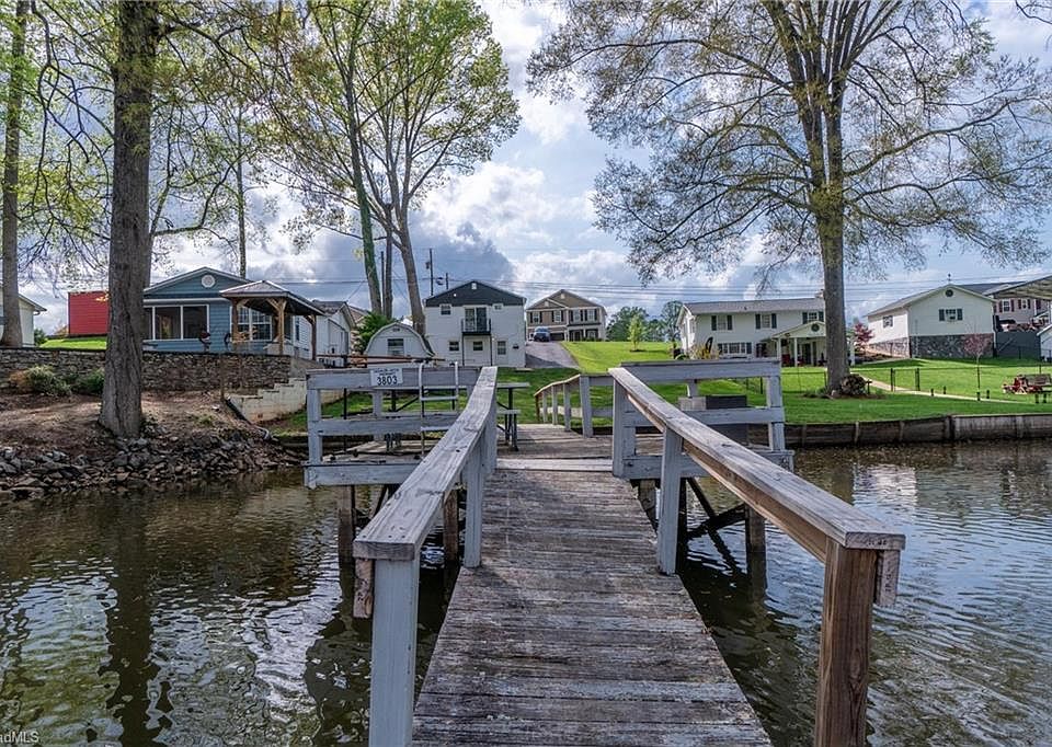 High Rock Lake Front! 611 Hickory Point is the opportunity you've been waiting for. Lake front cottage with a private dock and spacious lot. Optional private boat ramp in the community. The main level has an expansive living area, bedroom and full bath. Downstairs you will find a large eat-in kitchen with optional laundry area. Water closet downstairs with toilet. Relax on the main level balcony overlooking the lake or sit on the patio below enjoying the water view. Low maintenance block/vinyl exterior. Roof, windows, and HVAC updated in 2018.