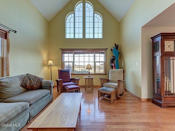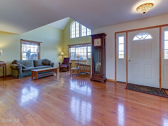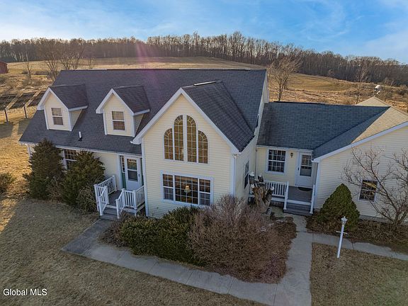 OPEN HOUSE CANCELED. 5 bed, 3.5 bath w/an in-law apartment w/private entry & breathtaking views! Hardwood floors, cathedral ceilings, open floor plan family room, large kitchen w/new appliances. Two 1st floor & 2nd floor bedrooms w/his/her closets, full bath on the 1st & 2nd floor w/jet tub, ½ bath on the 1st. In-law apartment w/kitchen, laundry, full bath, bedroom w/walk-in closet, bonus room & living room. Electric is solar, seller owned ground mounted solar panels/40k value, solar energy and agricultural tax discounts available. 11 beautiful acres, one field is currently being leased for tax credit/new owners may continue the lease or not. Generac generator, central air,1st floor laundry room, large composite back deck w/screened porch. 3 attached garage w/attic storage.