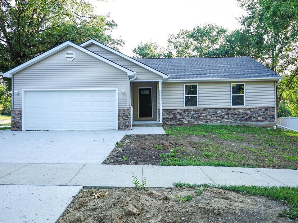 New construction at an affordable price! Home features an open concept with vaulted ceilings, granite counter tops, stainless steel appliances, and shaded back yard. Enjoy all amenities on one level with the floor plan consisting of 3 bedrooms (including the master bedroom that has a walk-in closet and double vanity), 2 full bathrooms, and laundry. Full basement includes 3 egress windows and roughed in plumbing to finish to your preference.