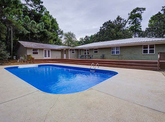 You will fall in love with this updated Old Daphne Ranch two blocks from Mobile bay and one block from Bayside. The enormous lot comfortably situates a three bedroom main house with a detached carport and 400 square foot detached living space overlooking the sparkling pool. The remodeled home features a durable metal roof and a new kitchen with stainless appliances and gorgeous quartz countertops that give it a clean, streamlined look. The floors are white oak and tile. Insulation is closed cell foam. The spacious and private back yard has a huge deck overlooking the pool and a shaded grassy area for kids and pets. The pool has a new liner, chlorinator and cleaning robot. Walk to Daphne's restaurants and shops or stroll down to the bay access for the beautiful sunsets over Mobile Bay. There are no Homeowner's association, restrictive covenants or dues. The detached space would be perfect for guests, older kids, out of town visitors or your mom.