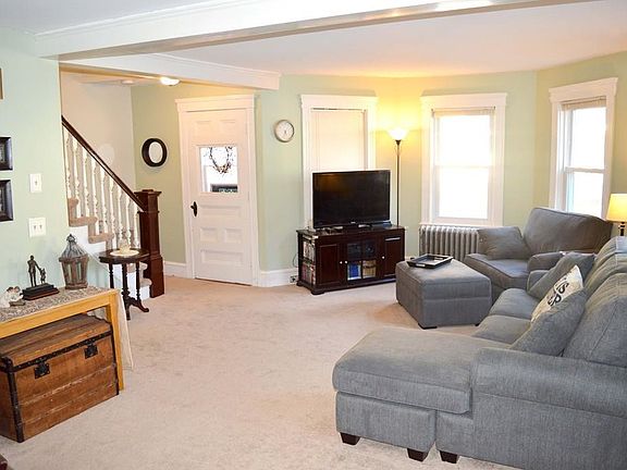 Beautiful antique home featuring bright, open living spaces, ample closet space and a 3 season room. The spacious kitchen has direct access to the deck overlooking the backyard and stream behind the property. The updated bathroom is conveniently located in the main living space on the first floor. New carpet in main living spaces with hardwoods underneath, and new paint throughout. Two of the upstairs bedrooms have a shared door for adjoining space. Windows were replaced in the basement and first floor (excluding 3 season room), and cosmetic updates have been done to the bathroom. Furnace, Radon system and appliances new in 2013. The antique charm is seen throughout the home with original woodwork, doors, window trim and glass doorknobs.